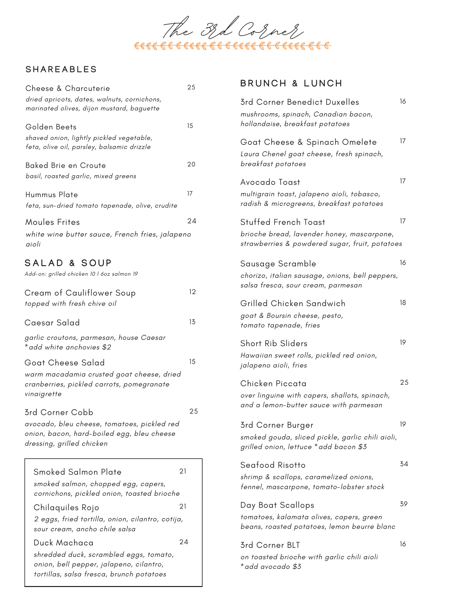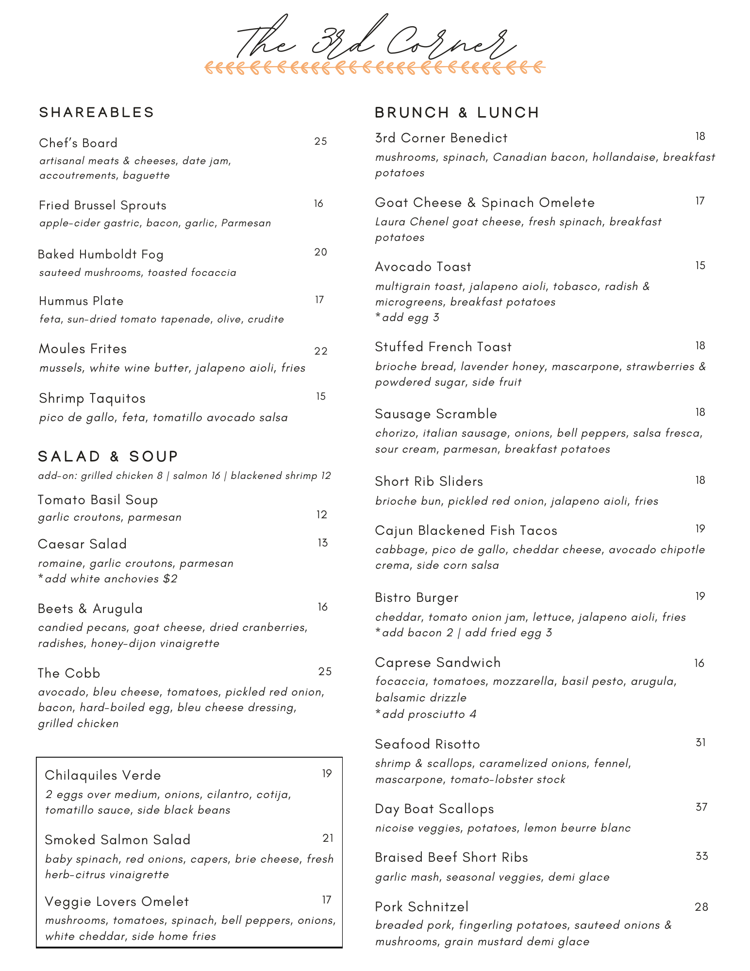 special brunch menus!